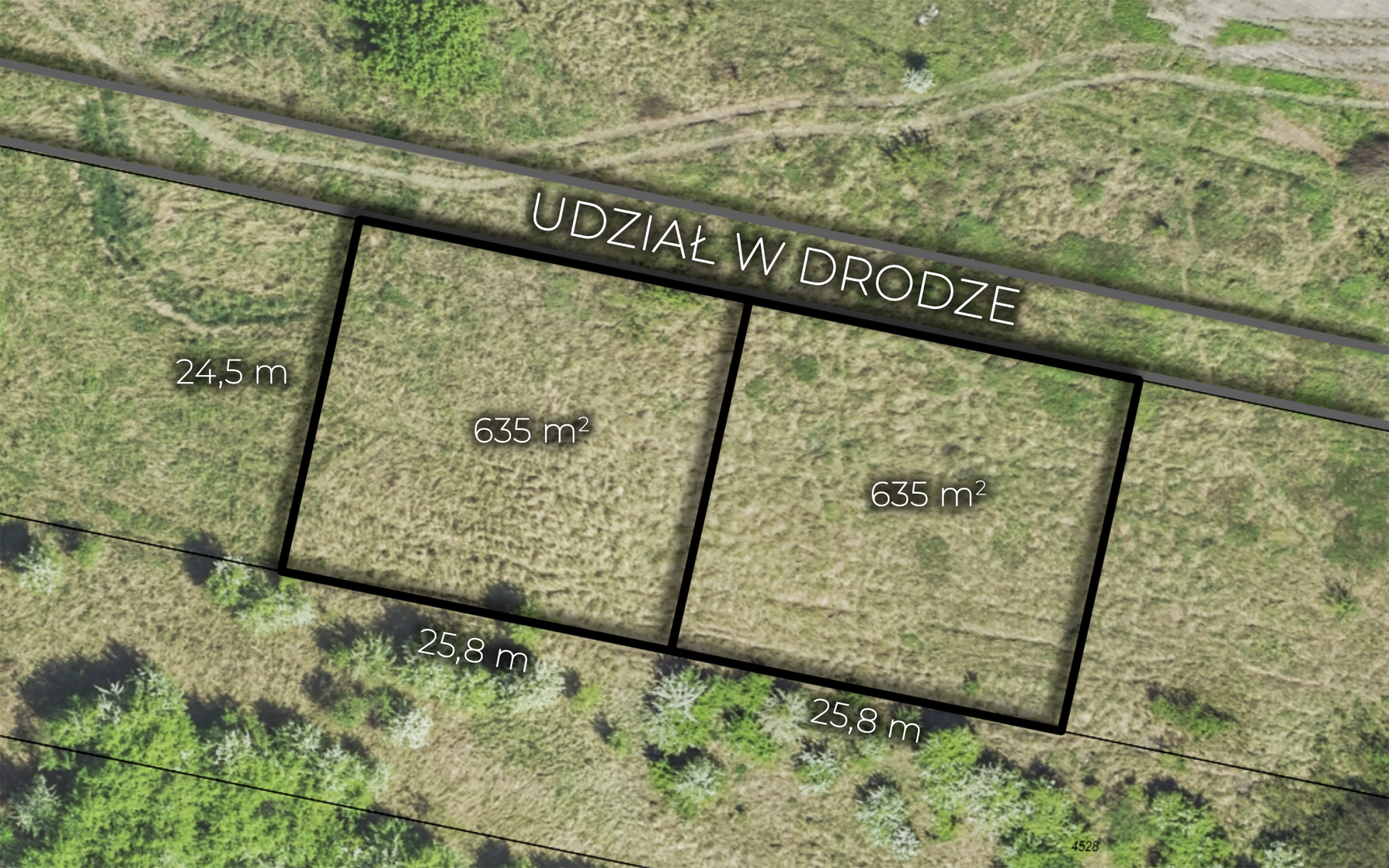 Powierzchnia działki: 635 m2 (szer. ok. 25,8 m x dł. ok. 24,5 m)